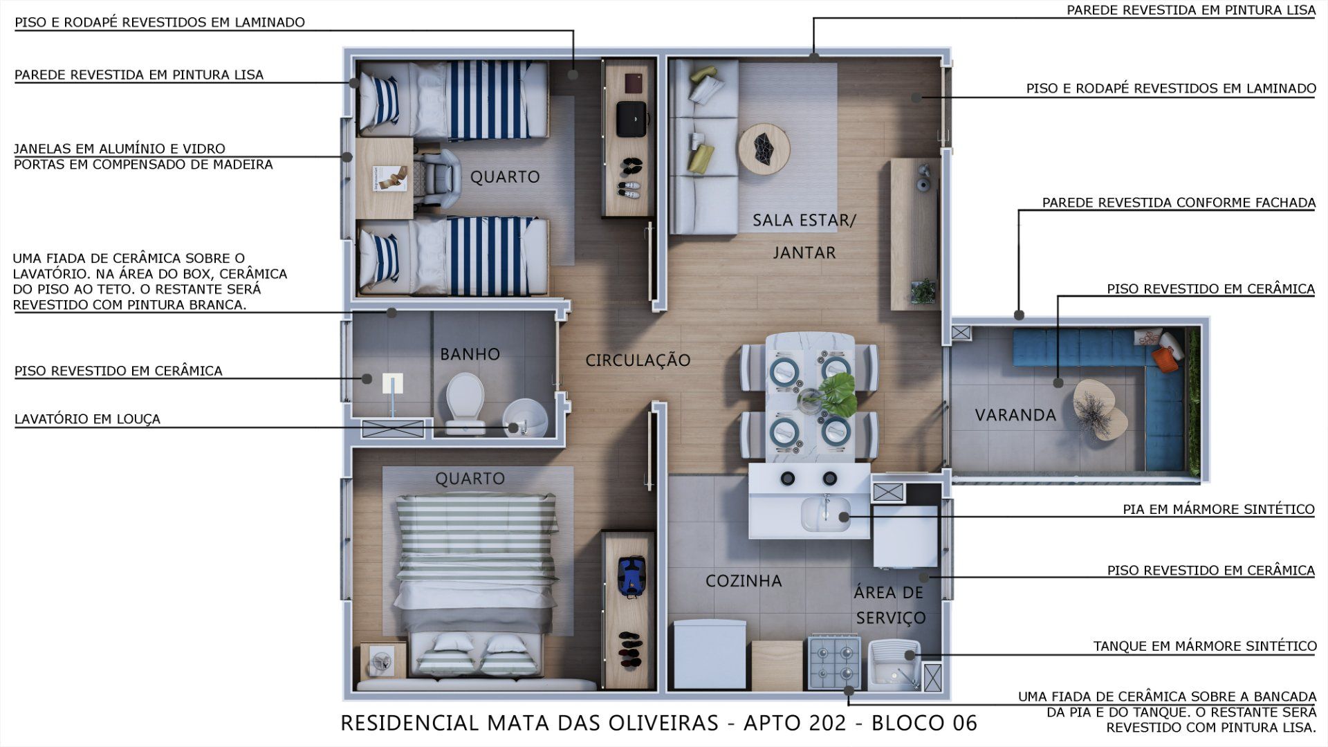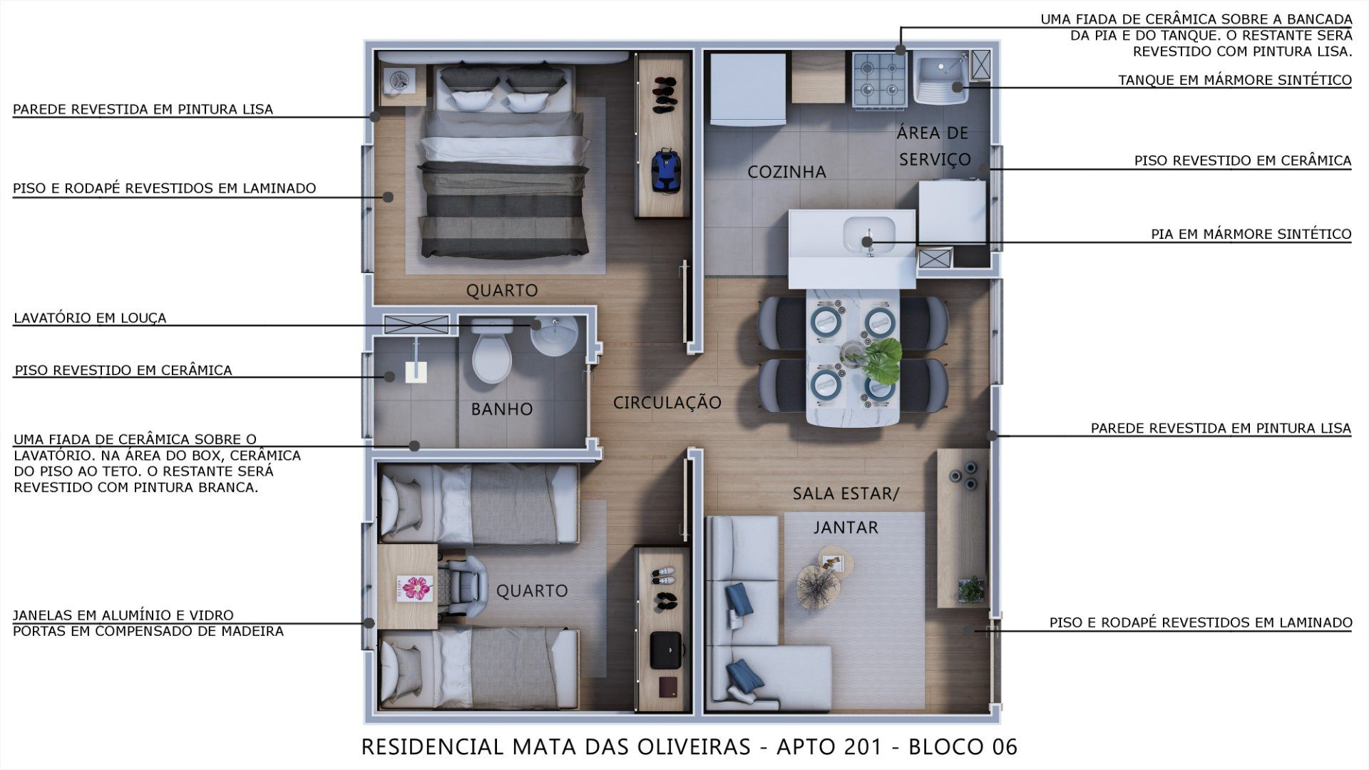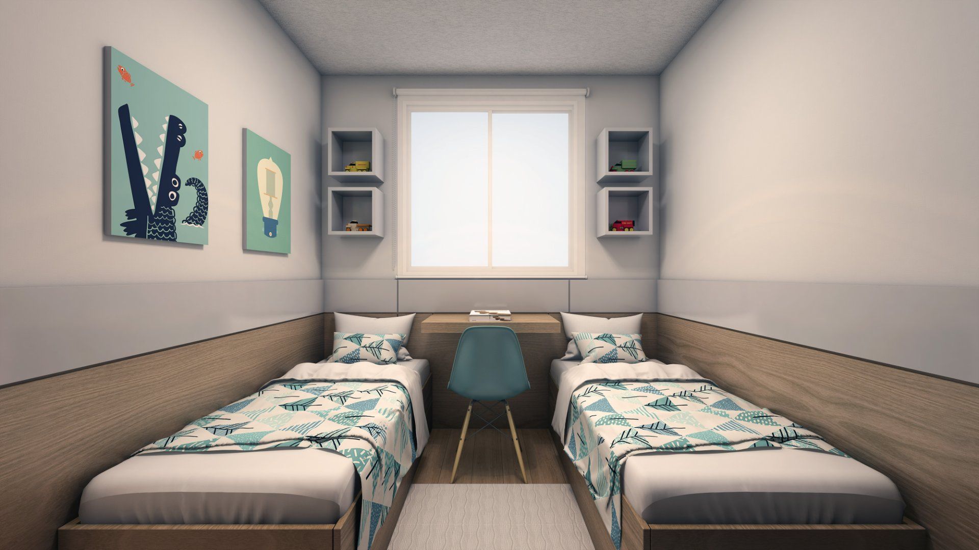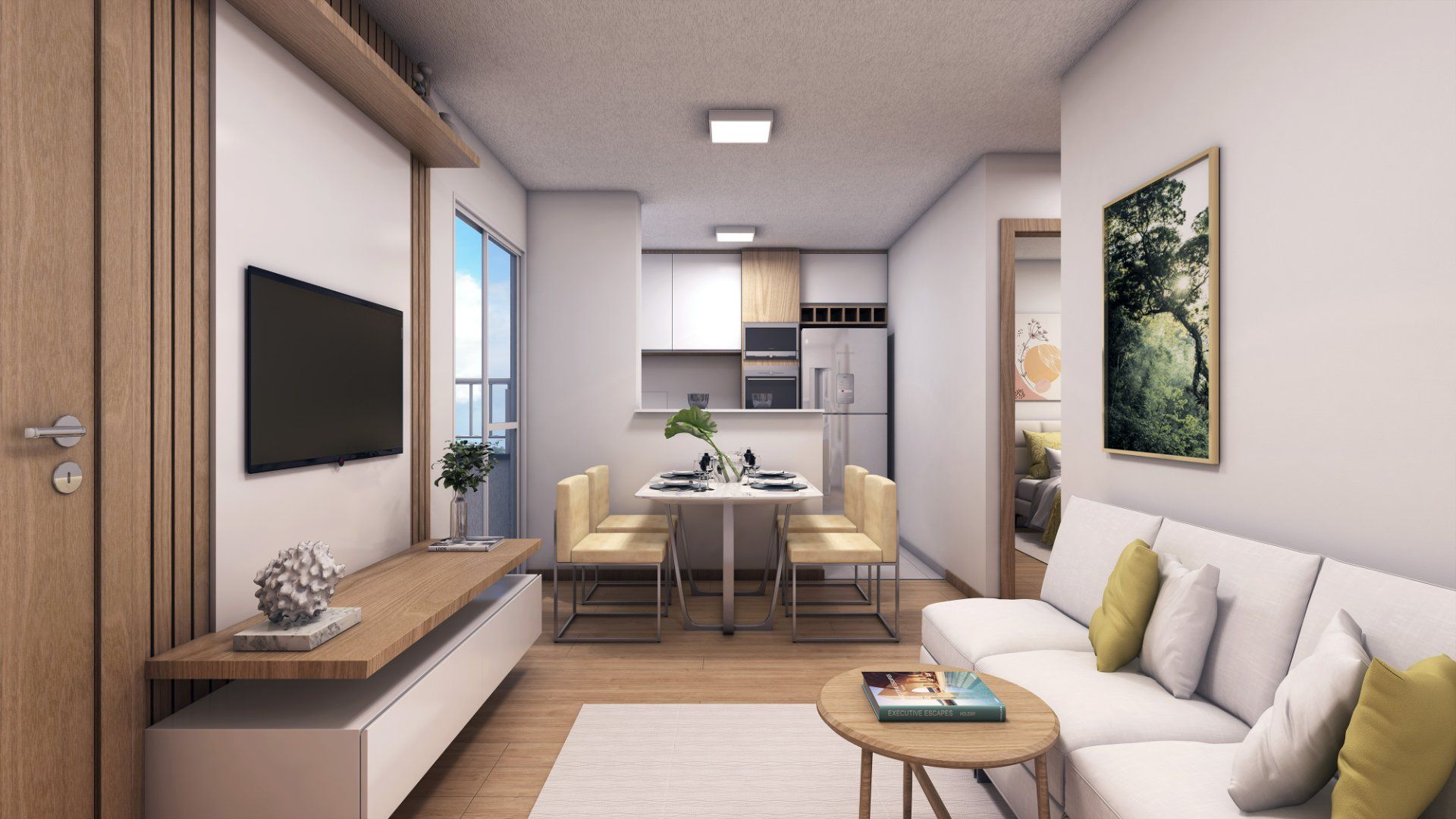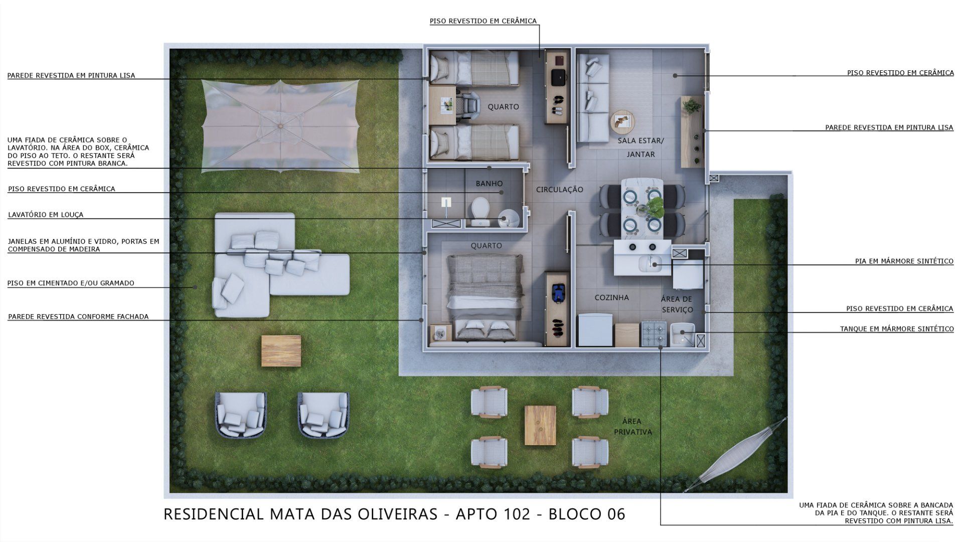 Tipologia: 2 quartos com opção de área privativa e varanda